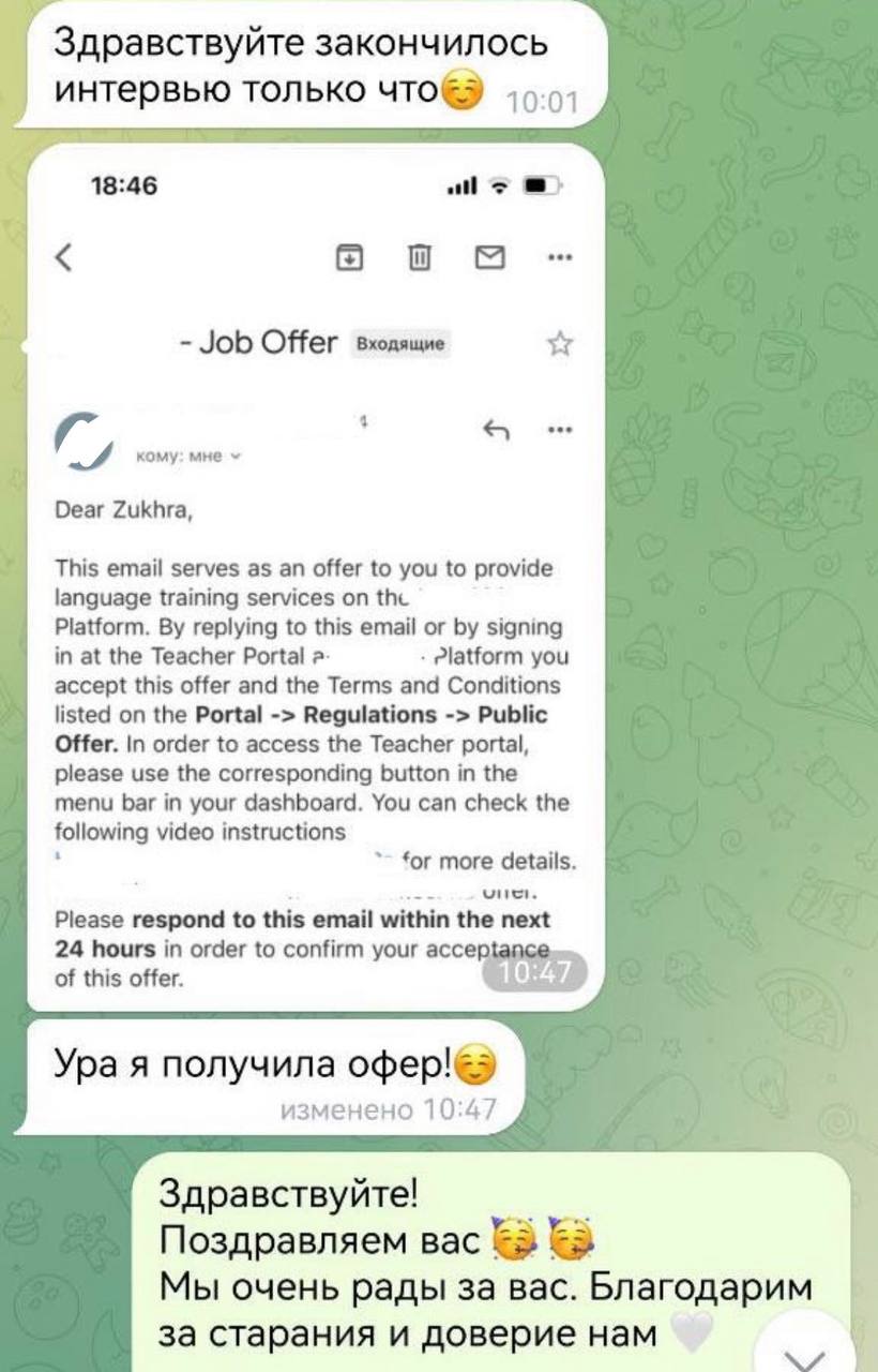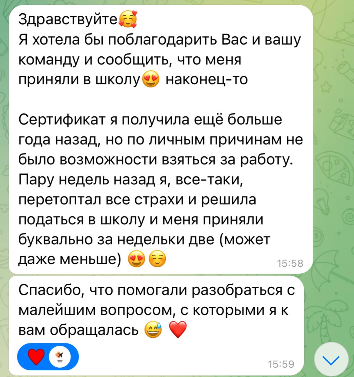 Пока наши специалисты готовят ваш сертификат, мы помогаем вам в подготовке резюме, демо-урока и видеовизитки - это занимает примерно неделю, школы отвечают, как на следующий день, так и через несколько дней, максимум 1-2 недели.